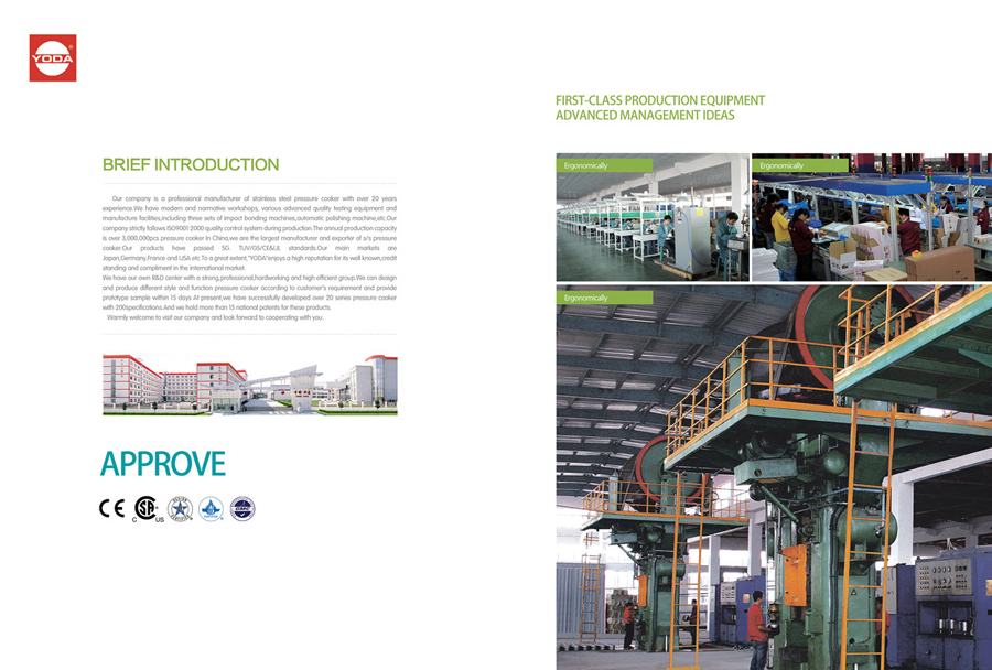 中國(guó)由達(dá)集團(tuán)是一家集產(chǎn)品研發(fā)、生產(chǎn)、銷售、服務(wù)于一體的現(xiàn)代化綜合型企業(yè)。發(fā)展其領(lǐng)域已經(jīng)覆蓋廚具、壓力鍋、門業(yè)、模具、膠木、國(guó)際進(jìn)出口。其中,由達(dá)壓力鍋是目前全球最大的壓力鍋OEM制造商之一,連續(xù)多年亞洲第一、世界三甲。