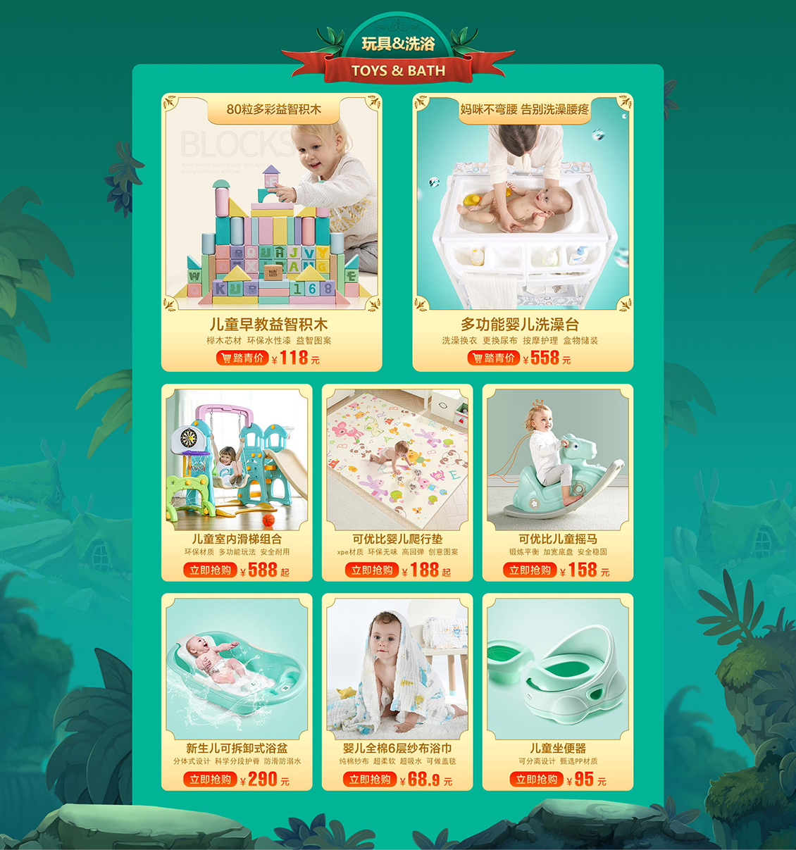可優(yōu)比母嬰用品兒童玩具童裝 天貓首頁活動專題頁面設(shè)計是1912設(shè)計的。