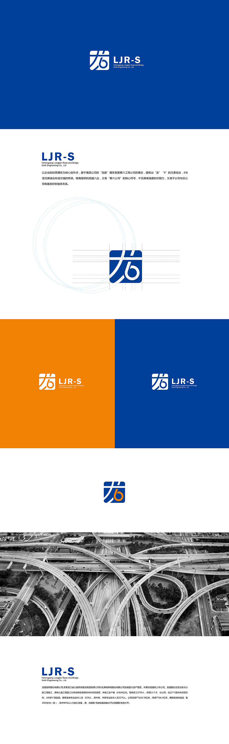 以企業(yè)的經(jīng)營屬性為核心創(chuàng)作點,基于集團(tuán)公司的“龍建”屬性發(fā)展第六工程公司的理念,提煉出“龍”“6”的元素結(jié)合,6與龍完美結(jié)合形成交錯的橋梁。既有路橋的四通八達(dá),又有“第六公司”的核心符號,不僅具有高度的識別力,又使子公司與總公司有著良好的繼承關(guān)系。