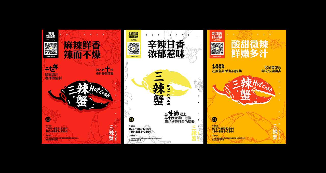 客戶起初找到我們的時(shí)候,希望是突出做蟹的行業(yè)特征但又不想要太俗氣。通過(guò)跟客戶充分溝通后,我們抓住了螃蟹鉗和辣椒的特征兩者結(jié)合,然后將logo的名稱嵌于形狀內(nèi),有別于傳統(tǒng)logo的做法,更多的偏向了西式涂鴉的感覺(jué)。在后期的圖形延展上面,我們畫(huà)了一些特定口味的插圖以配合到包裝應(yīng)用上,讓整體形象更加提升。