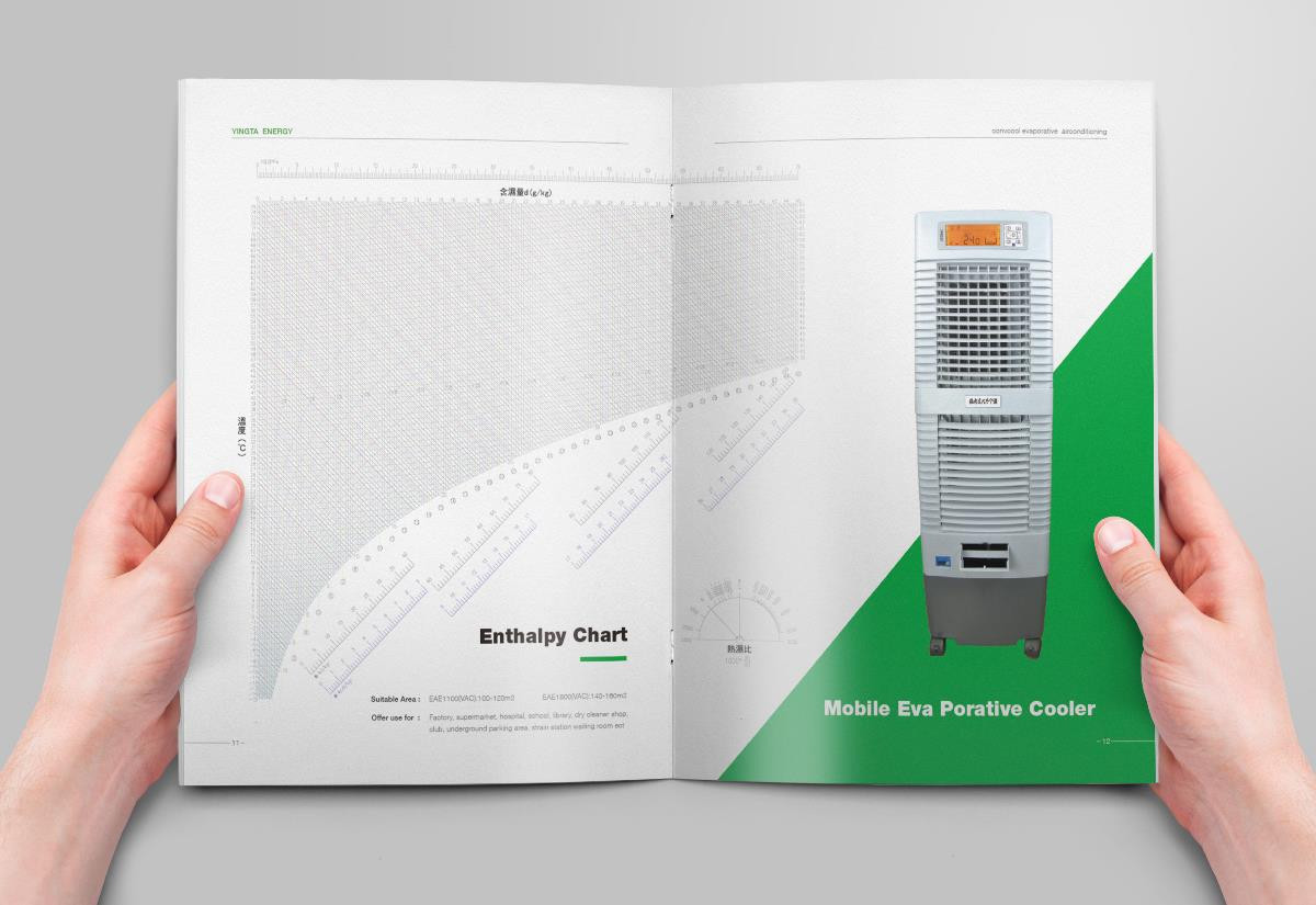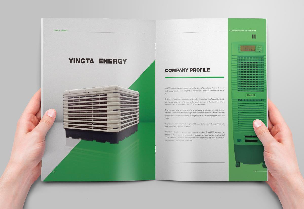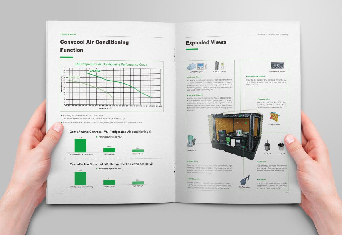綠色水冷空調(diào)英文畫冊設(shè)計欣賞,畫冊設(shè)計是采用綠色的色調(diào)進(jìn)行設(shè)計的,符合空調(diào)節(jié)能環(huán)保的理念。