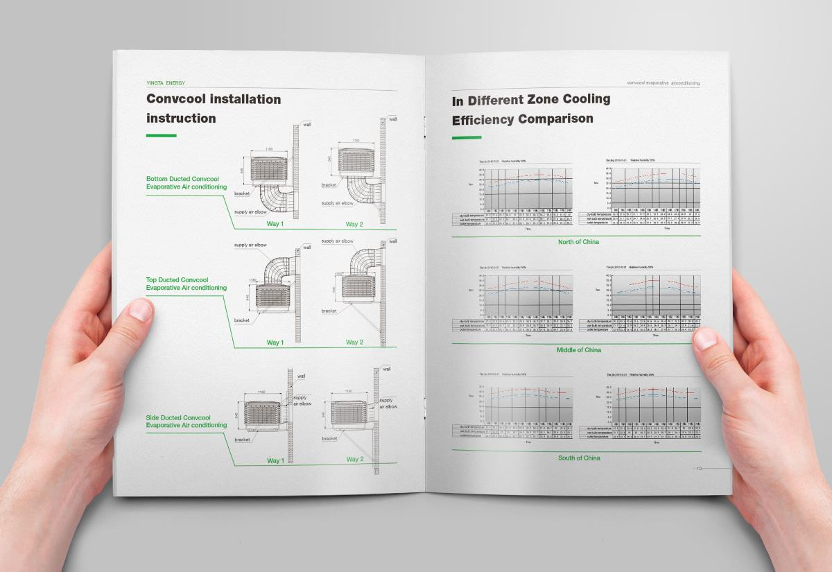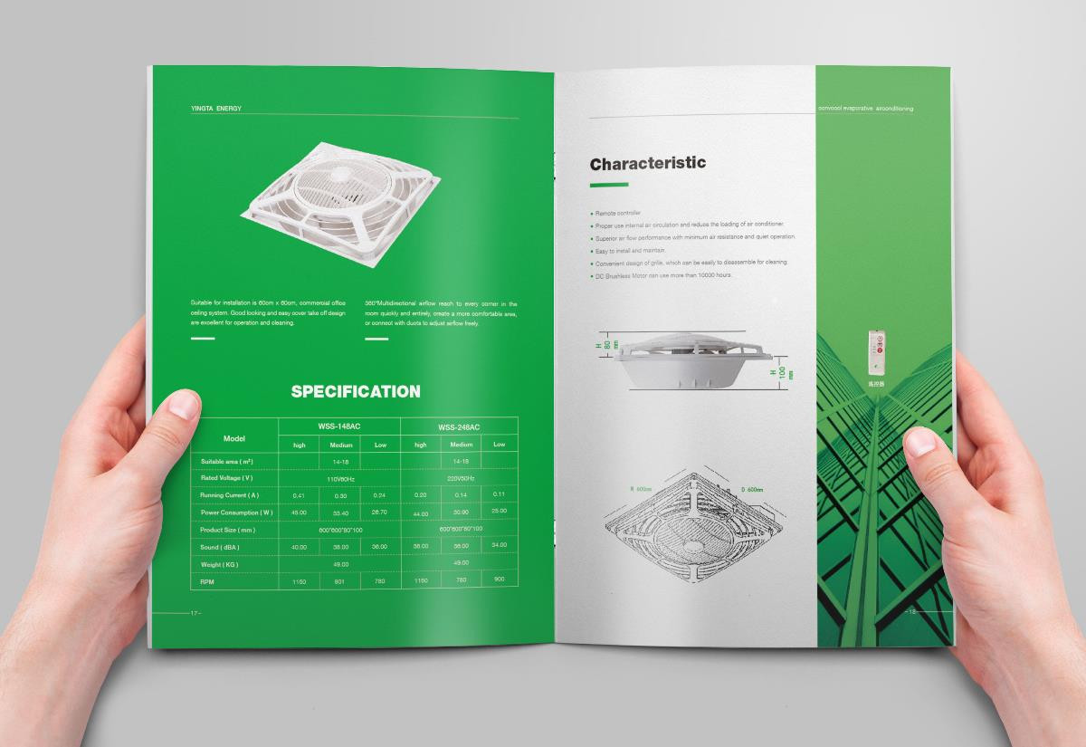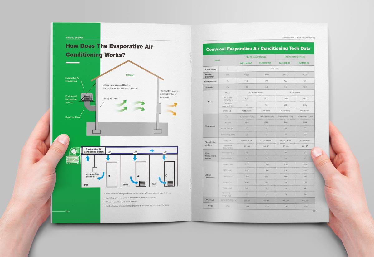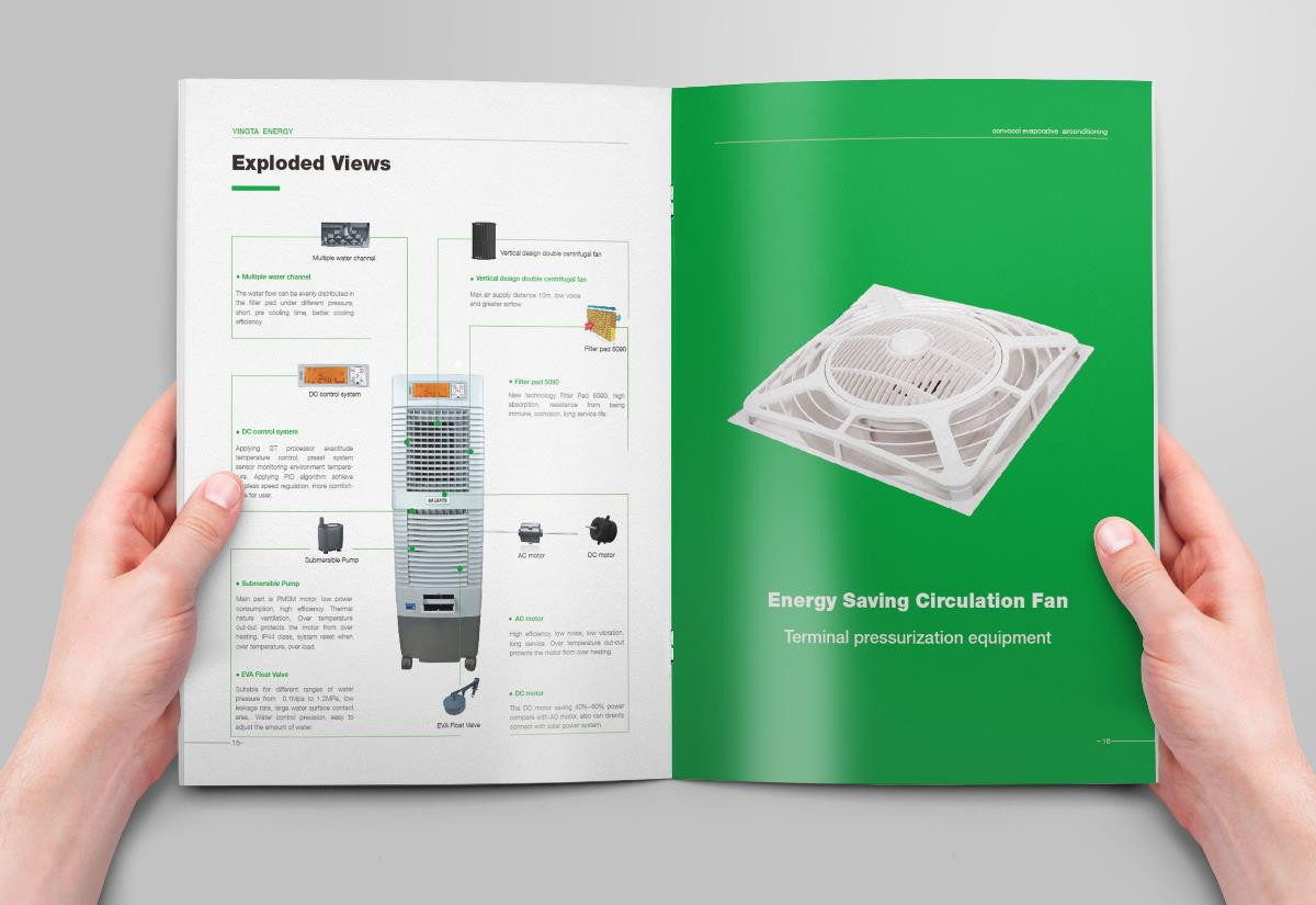 綠色水冷空調(diào)英文畫冊設(shè)計欣賞,畫冊設(shè)計是采用綠色的色調(diào)進(jìn)行設(shè)計的,符合空調(diào)節(jié)能環(huán)保的理念。