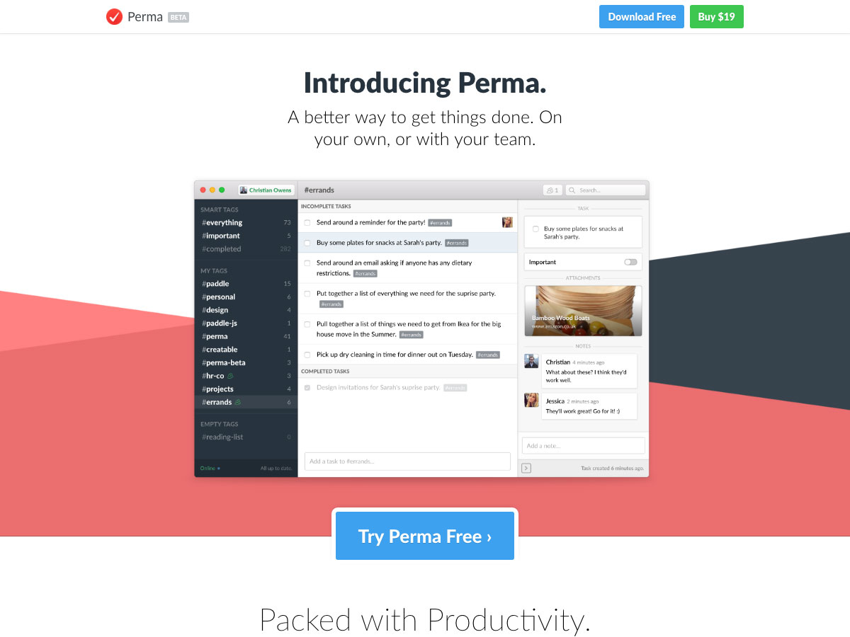 Perma 是一款生產(chǎn)力工具,可以個人用,也適宜于團隊協(xié)作,從組織規(guī)劃,到協(xié)作和討論,它都可以輕松應(yīng)付。