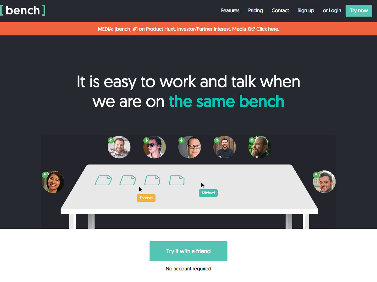 對與團隊協(xié)作而言,Bench 絕對是贊到爆的工具。所有參與團隊討論的用戶將會從Bench 獲得一個加密鏈接加入會議。Bench 目前提供免費和付費兩個版本。