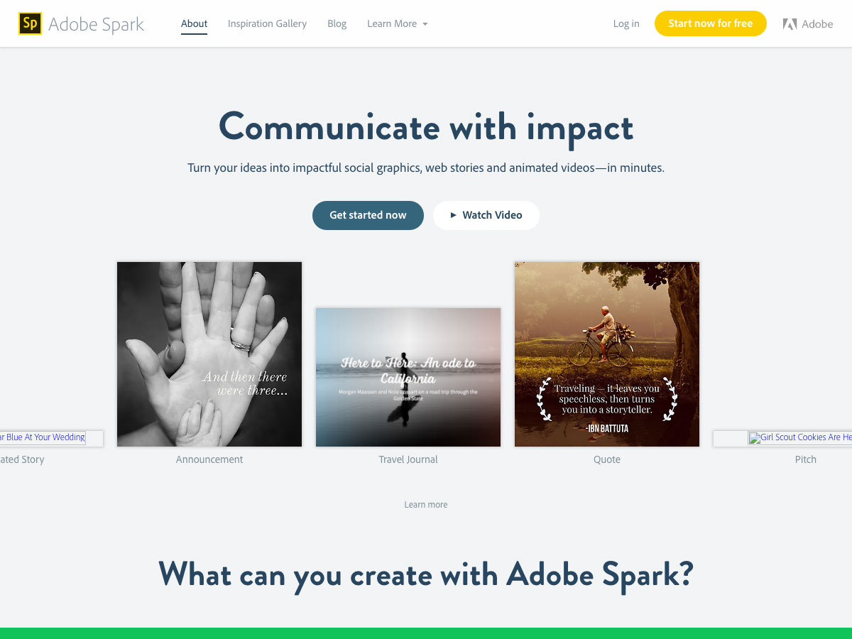 Adobe Spark 可以輕松地將你的想法轉(zhuǎn)化為社交圖形,在線故事和動畫視頻,僅僅只需幾分鐘。