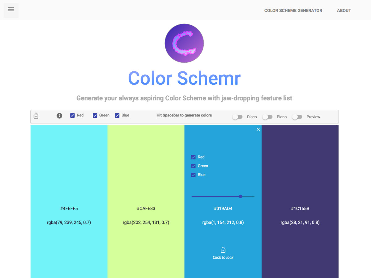 Colicious 是一款用來探索和發(fā)現(xiàn)平面設(shè)計色彩的應(yīng)用,你只需要點擊空格鍵或者點擊屏幕就可以獲得一種新的色彩。