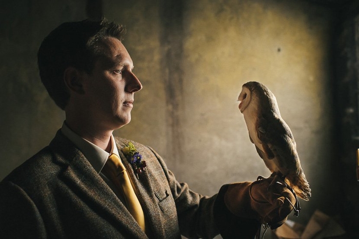 例如攝影師就說(shuō)這張照片的新郎手上抱著貓頭鷹,是因?yàn)樗且粋€(gè)動(dòng)物園管理員。