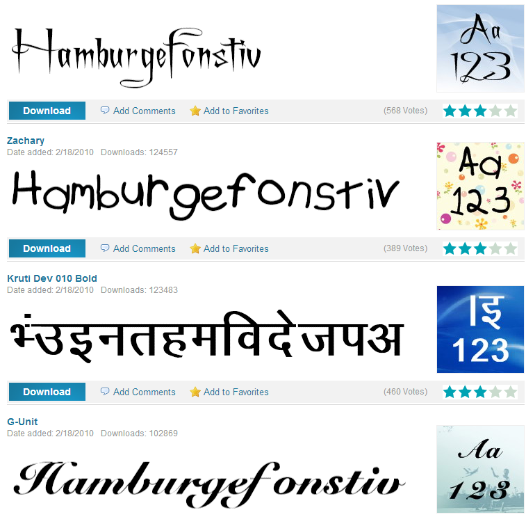 UrbanFonts是Web 2.0的ajax風格的字體目錄,擁有超過8000個免費字體,并且有PC與MAC格式,你應(yīng)該能從中找到自己喜歡的。該網(wǎng)站提供各種方式來即時預(yù)覽字體,包括樣文,字符集,不同尺寸等 ,除此之外,他們還提供一些最新的字體新聞和一些有趣的歷史上的各種字體。