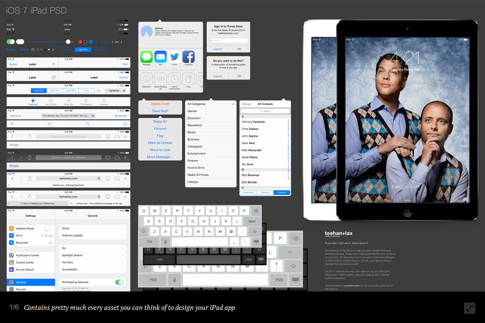 除了提供iPhone界面模板,Teehan+Lax也提供iPad的PSD模板,同樣地,模板也已更新至iOS8系統(tǒng)。