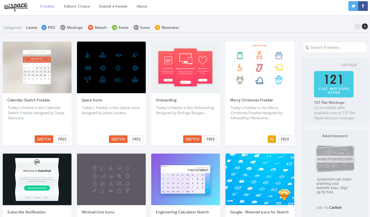 Ui Space包含PSD、樣機、素描、字體、圖標、插畫等免費資源,根據(jù)名稱便可清楚的知道,它為平面設計師帶來了豐富的UI設計素材。