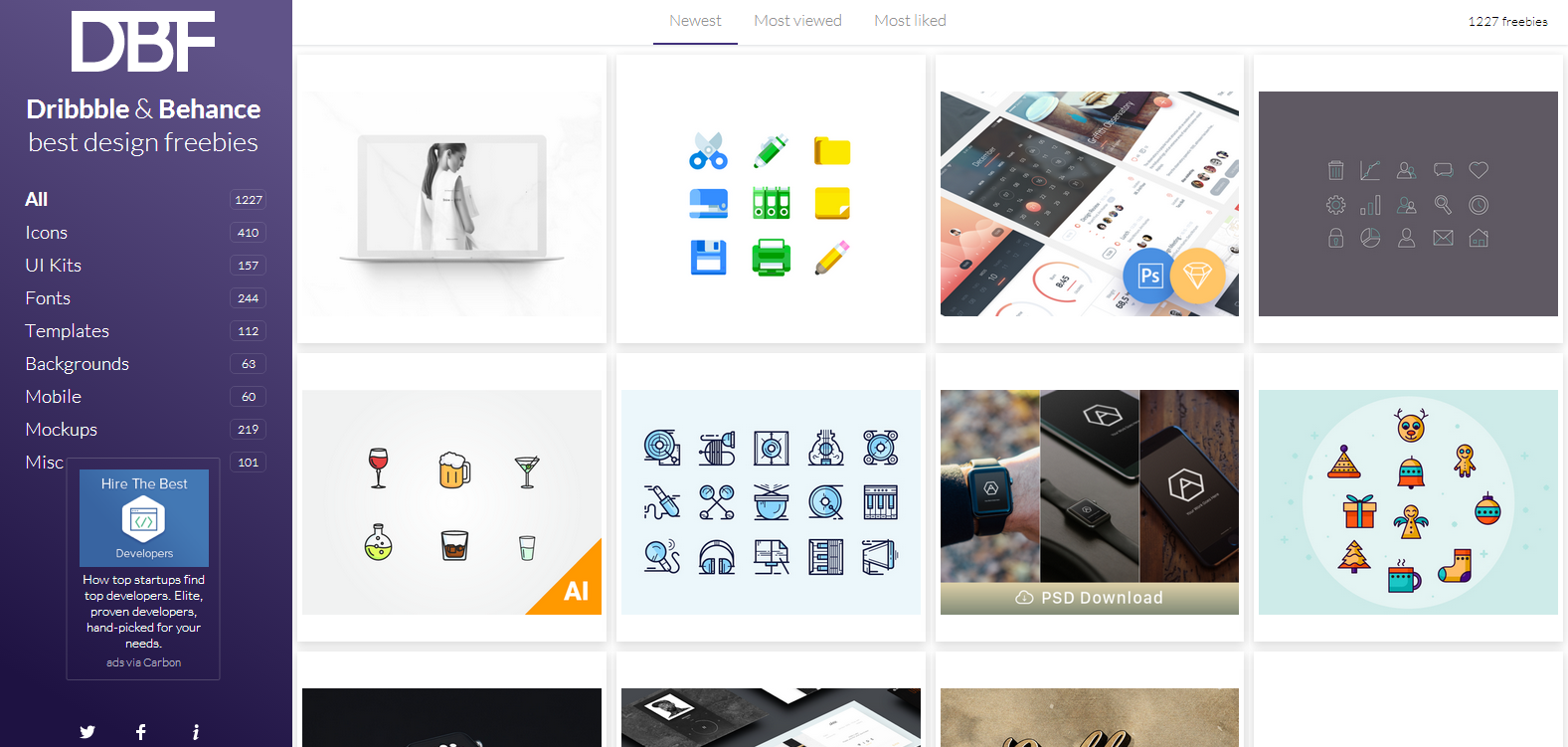 DB Freebies上面提供的是從Dribbble和Behance下載的最好的免費贈品的平面設計資源。用戶可獲取最新的免費PSD的UI、實物模型、圖標、字體、模板和背景。
