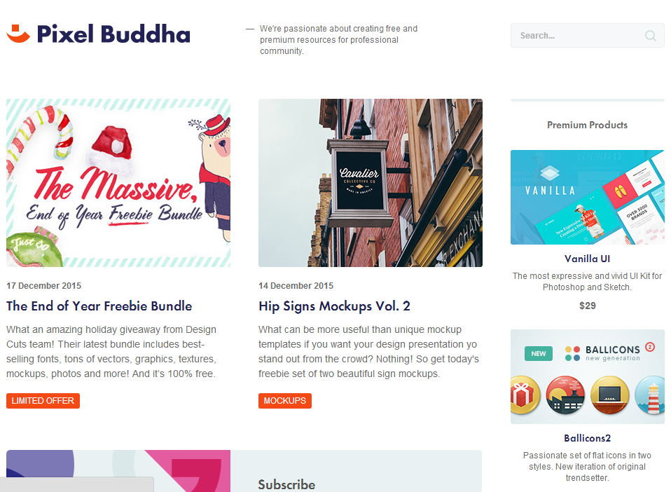 Pixel Buddha?囊括了為專業(yè)人士準備的平面設計素材,有免費的好資源,也有收費的進階版資源。