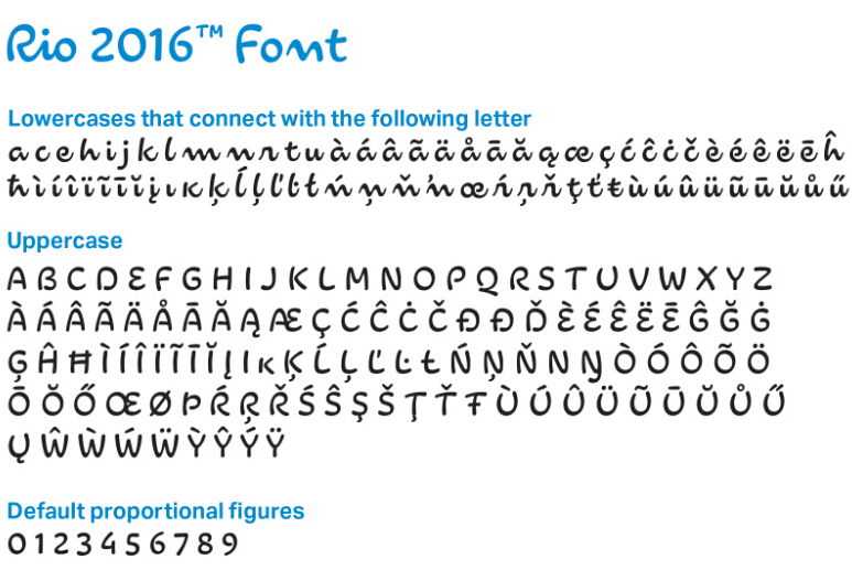 這構(gòu)成了2016年奧運(yùn)會(huì)的字體的字母和數(shù)字。