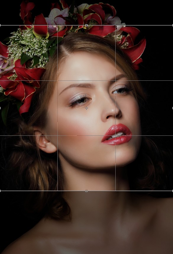 打開美女模特圖片素材,使用裁剪工具(快捷鍵為C),選取頸部以上后確認。