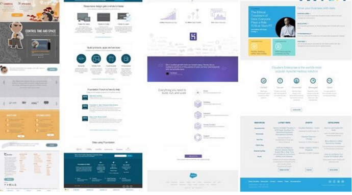 看看Cloudera吧,首頁不同部分(首頁三屏中不同部分的截圖對比)的關聯(lián)是不是感覺很像是電影中的隱藏劇情般引人入勝呢?黃、藍、綠三種顏色的不同處理方式(交融、分離、疊加)構(gòu)成了整體頁面既統(tǒng)一、個性、又有巧妙聯(lián)系的視覺語言。