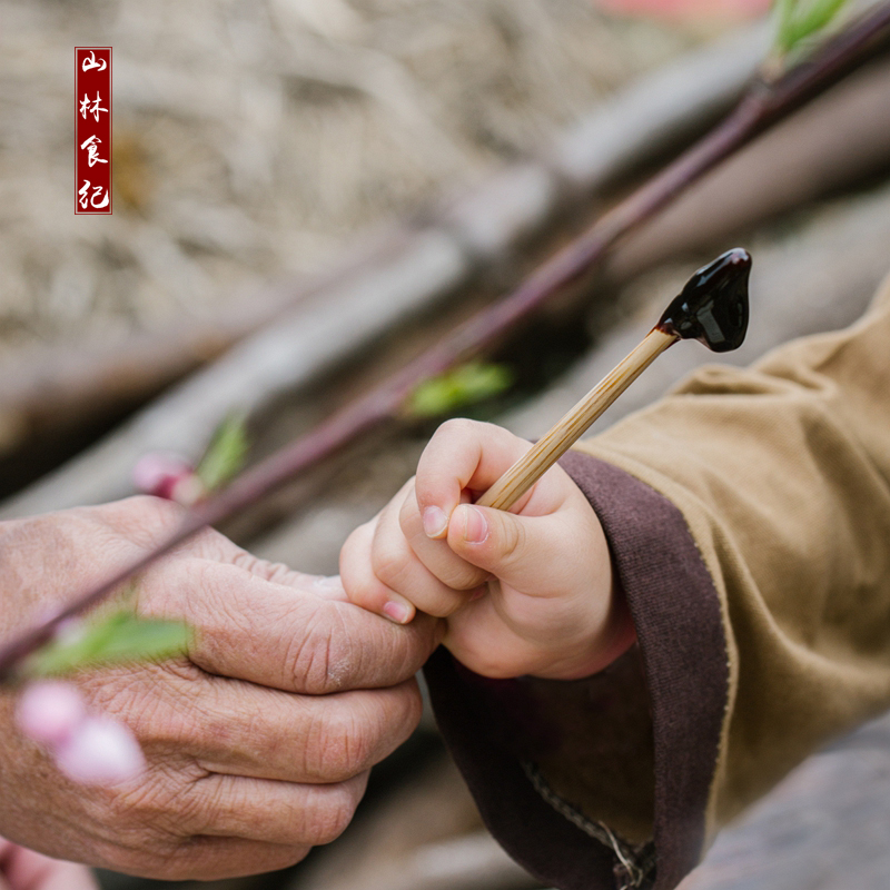 新蔗新熬之純紅糖,拉扯有絲,卷棒成糖,稚童亦歡喜。