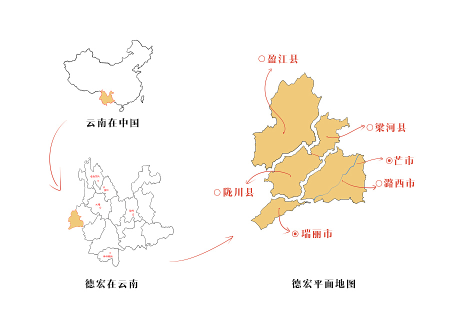 該組表現(xiàn)的是中國云南省德宏傣族景頗族自治州。