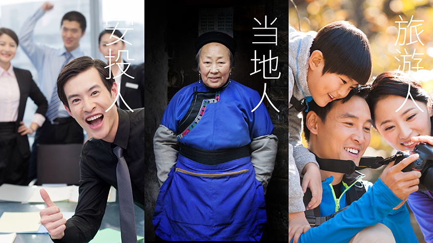 安投旅游是貴州安順投資有限公司下屬全資子公司,主要經(jīng)營范圍是對旅游項目、旅游基礎(chǔ)設(shè)施以及相關(guān)配套產(chǎn)業(yè)進行投資建設(shè)和經(jīng)營管理;通過對市場大環(huán)境的分析以及前期的客戶溝通,我們提煉了“人”與“聚”作為兩個不同的方向概念;