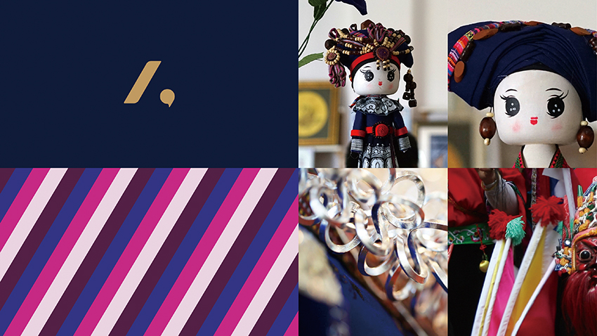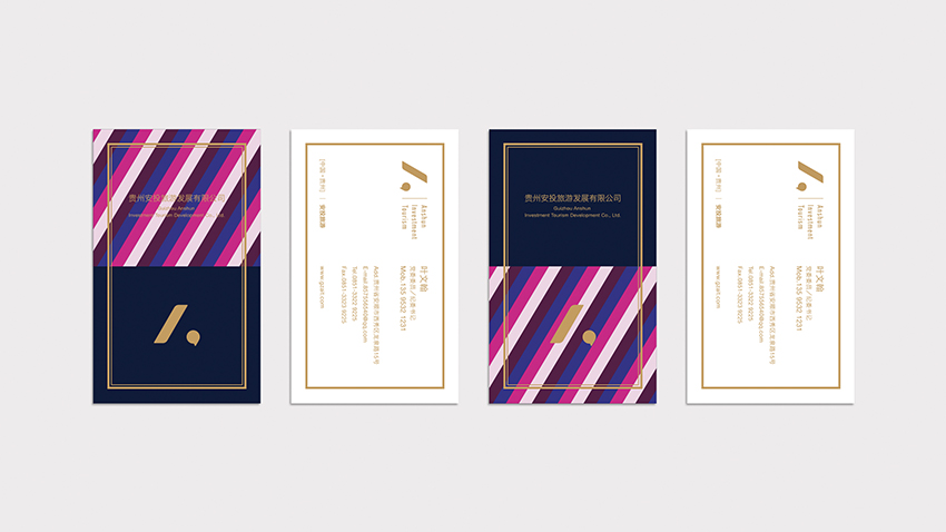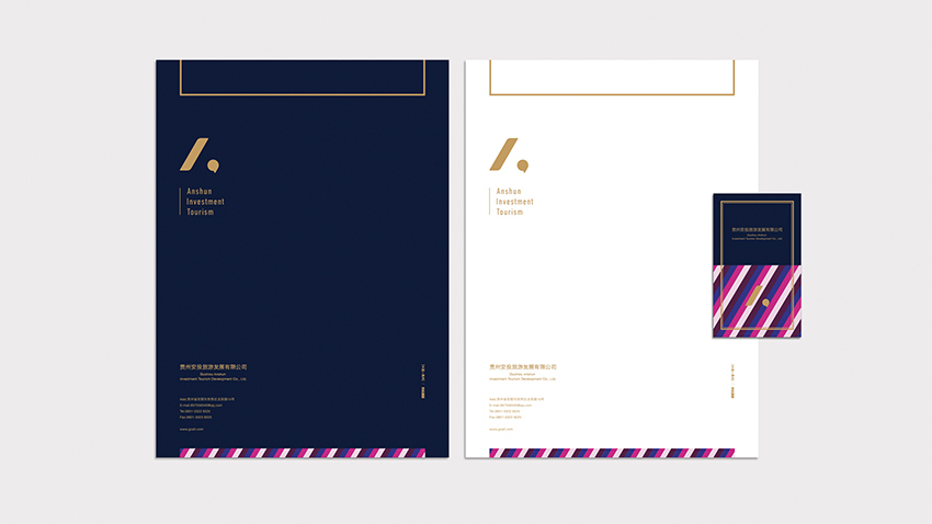 以“人”為核心創(chuàng)意點結(jié)合了安投旅游首字母“A”設(shè)計出一個極簡的標(biāo)識形象,整套色彩體系與輔助圖形抽取了貴州安順當(dāng)?shù)胤棃D案和色彩;