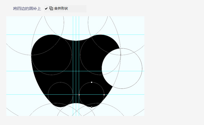 心急的話,我們可以在此步后,就可以把蘋果的形狀圖層畫出來了。由于我要畫牛逼閃閃的參考線,所以先不著急,一口氣把參考線繪制完。