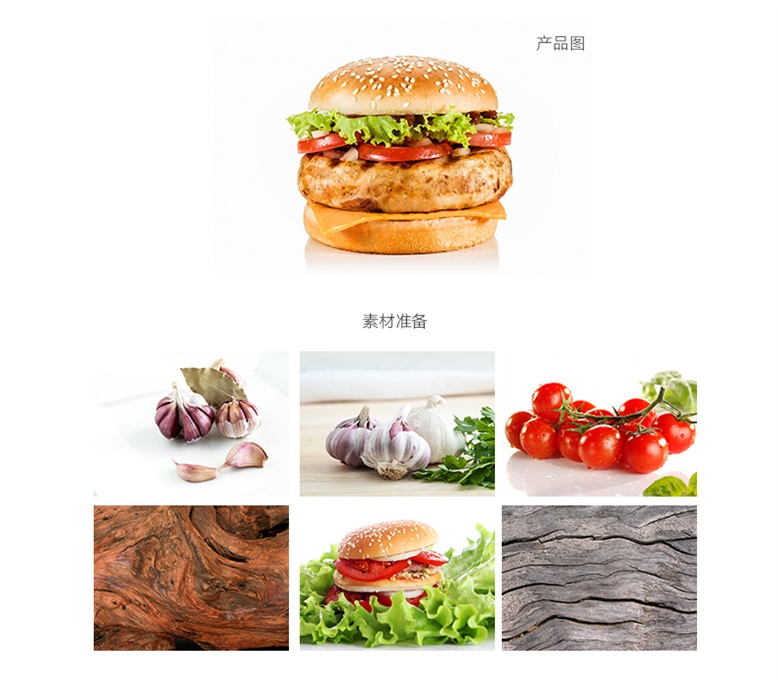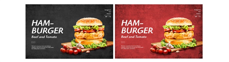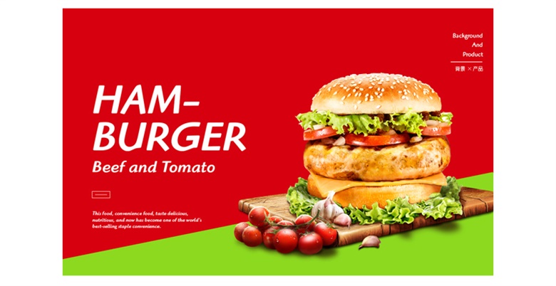 模擬一個(gè)漢堡的畫(huà)面,分別以純顏色背景、場(chǎng)景背景、漸變背景、材質(zhì)背景進(jìn)行設(shè)計(jì)