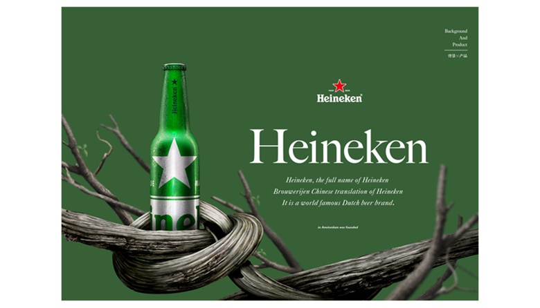 灰色調(diào)的綠作為純顏色背景,主體是經(jīng)過(guò)塑造的啤酒瓶,兩者顏色雖然屬于同一色系,但是在色調(diào)上產(chǎn)生對(duì)比,同樣起到突出主體的作用。