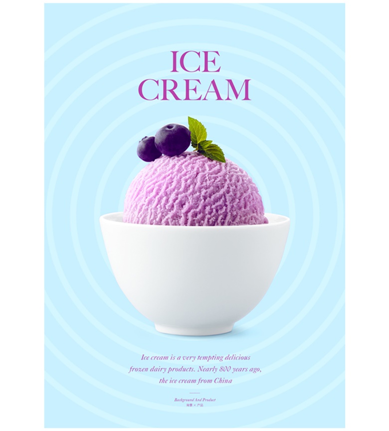 模擬一個(gè)冰淇淋的畫(huà)面,分別以純顏色背景、場(chǎng)景背景、漸變背景、圖形背景進(jìn)行設(shè)計(jì)。