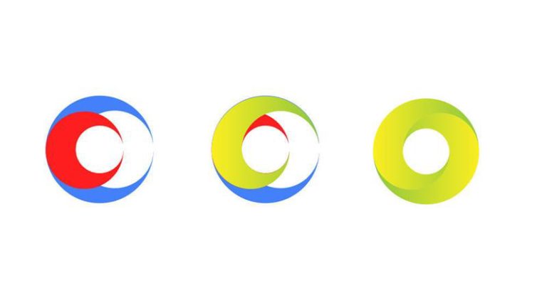 于是嘗試用兩個(gè)小圓切出紅色形狀,兩個(gè)大圓切出藍(lán)色形狀,得到綠色單體,通過復(fù)制翻轉(zhuǎn)得到最后圖形。