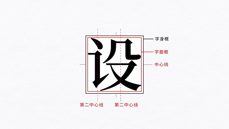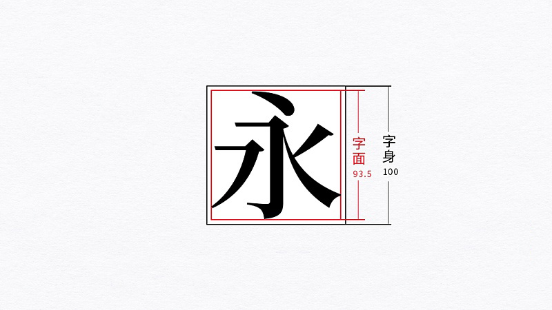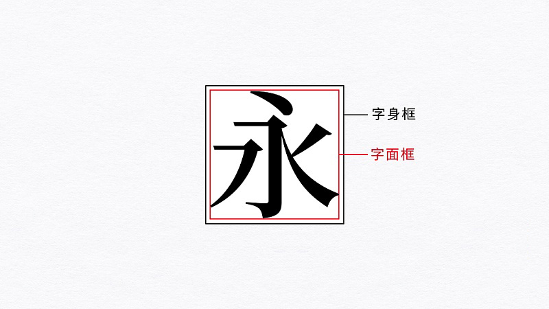 這里的“面”單純而直接,通俗來理解就是指外表,我們?cè)O(shè)計(jì)字時(shí)常會(huì)以兩個(gè)方形框作參考來限定字的外表,即字身框和字面框。
