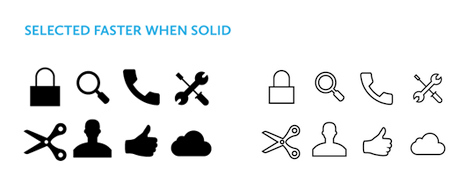 在 UI 設(shè)計中,空心圖標(biāo)和實(shí)心圖標(biāo)應(yīng)該在什么場景下使用?有人說,空心圖標(biāo)在視覺上比實(shí)心圖標(biāo)看起來更復(fù)雜,實(shí)心圖標(biāo)比空心圖標(biāo)識別度更高。