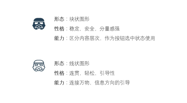 在實(shí)際的設(shè)計中,實(shí)心和空心圖標(biāo)往往是結(jié)伴出現(xiàn)的,我們?nèi)裟芴幚砗盟鼈冎g的相互關(guān)系,將會使信息傳達(dá)事半功倍。