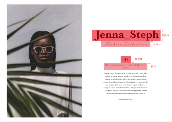 例如從常規(guī)體切換到斜體或手寫體,斜體手寫體是好東西,要善用,它可以打破呆板的版面,也會(huì)讓設(shè)計(jì)變得沒(méi)那么正式,線條柔和,但是弊端是可讀性低一些,可以適當(dāng)加大字號(hào),這樣利用閱讀。