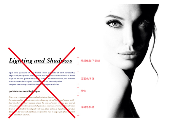 這個(gè)方法能強(qiáng)調(diào)其自身的視覺(jué)效果。如輕粗線字體、中等粗細(xì)搭配超大字體等。要記住,字號(hào)小的粗體視覺(jué)上會(huì)比正常墨線的大號(hào)字顯得更加厚重