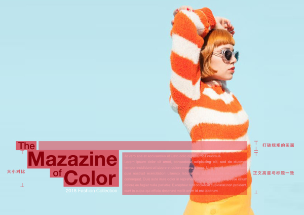 還有一點(diǎn),如上圖,介詞“the”的位置比大標(biāo)題和正文高度高了一行,這樣處理的原因是可打破其規(guī)矩的畫面,使得版式不顯得呆板。