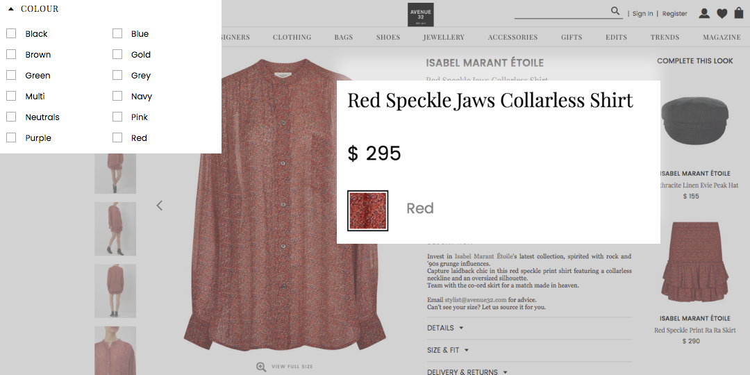 盡管這似乎是一個(gè)好主意,但重要的是要記住,不是所有訪問(wèn)該網(wǎng)站/應(yīng)用程序的人都是同一類別。對(duì)于具有正常視力的用戶,當(dāng)他們看到過(guò)濾器中的顏色時(shí),這是一個(gè)很好的體驗(yàn)。當(dāng)客戶只想盡可能快速順利地查看搜索結(jié)果時(shí),去除色板可能會(huì)減慢選擇顏色的相互作用。