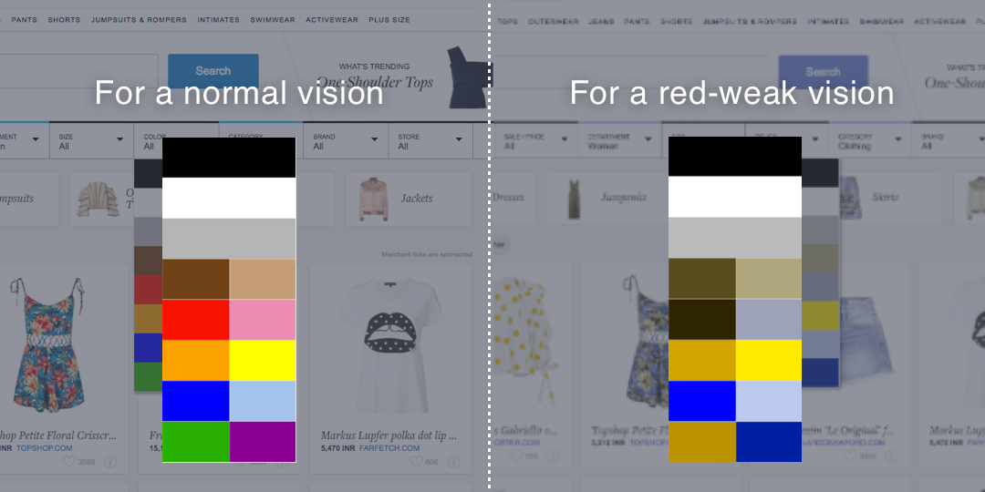 另一個(gè)常見(jiàn)的問(wèn)題是濾色鏡未標(biāo)記!以下是一個(gè)眾所周知的電子商務(wù)網(wǎng)站的示例,其中包含了為標(biāo)記的彩色濾鏡。另一方面,我也反映了一個(gè)有紅色弱視問(wèn)題的用戶體驗(yàn)網(wǎng)站的方式。