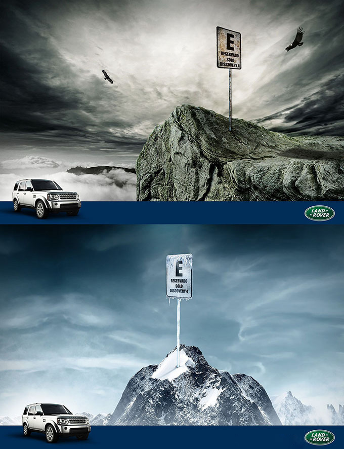 設(shè)計(jì)中主色調(diào)的確定必須有利于突出畫面的重點(diǎn)。主色調(diào)的設(shè)定,必須先考慮到與主體形象的色彩關(guān)系,主體形象應(yīng)該在統(tǒng)一調(diào)和的色彩中強(qiáng)調(diào)變化,從而讓畫面色彩產(chǎn)生視覺興奮點(diǎn),發(fā)揮色彩的沖擊作用,產(chǎn)生引人注目的視覺效果。此外,主體形象與背景在色彩上明度、純度的對比,都會對主體形象的突出起到至關(guān)重要的作用。若只注意背景與主體形象在色相上的差別,沒有考慮到明度和純度的差別,就會造成背景與主體形象難以區(qū)分的后果。例如:汽車廣告設(shè)計(jì)大多以高山、江河、公路或市區(qū)等較為復(fù)雜的景觀作為背景。車體形象在任何時刻都不失風(fēng)采。畫面對比強(qiáng)烈,整體色調(diào)統(tǒng)一、彰顯大氣、尊貴之感。