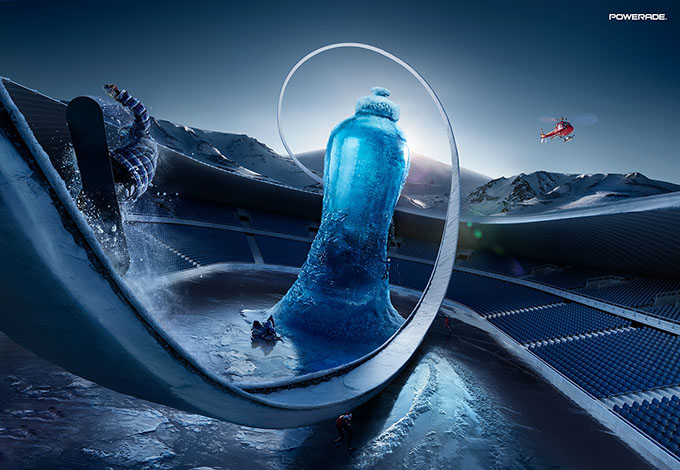在設(shè)計中,運用對比的方法,便可突出某種形象和內(nèi)容。例如:采用了空間對比的關(guān)系,使畫面給人很強的延伸感和空間感,突出了產(chǎn)品音質(zhì)的空靈廣闊的特點;采用了曲線與直線的對比關(guān)系,使畫面具有曲線美麗和動感的同時,又具有直線的直爽和豪邁感。