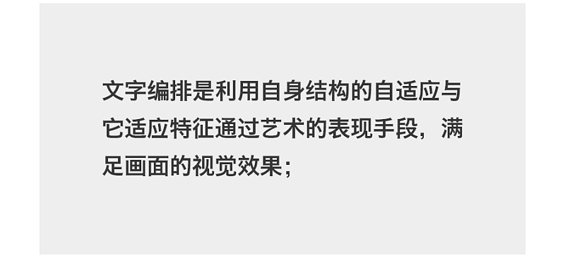 很多情況下,當(dāng)我們把文字進(jìn)行有序的排列之巵就會誤認(rèn)為是編排,其實(shí)只是把文字正常的輸出來而已,并沒有進(jìn)行任何的修飾和編排,雖然是大家都比較熟悉且容易認(rèn)知的類型,但作為設(shè)計(jì)師則會失去應(yīng)用的職責(zé),在不添加任何效杲修飾的情況下,正常的文字編排很難出彩營適較好的視覺效果。